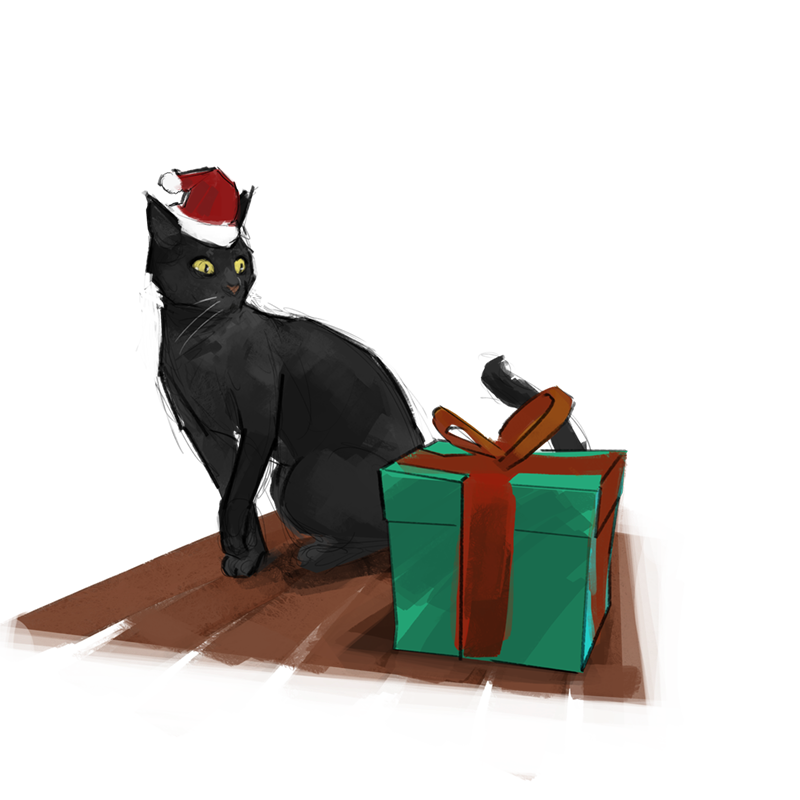 En guise de conclusion, nous vous laissons avec cette petite illustration du chat d’Echoes, paré pour Noël et prêt à déballer son cadeau. Au fait, si vous deviez lui donner un nom, lequel choisiriez-vous ?